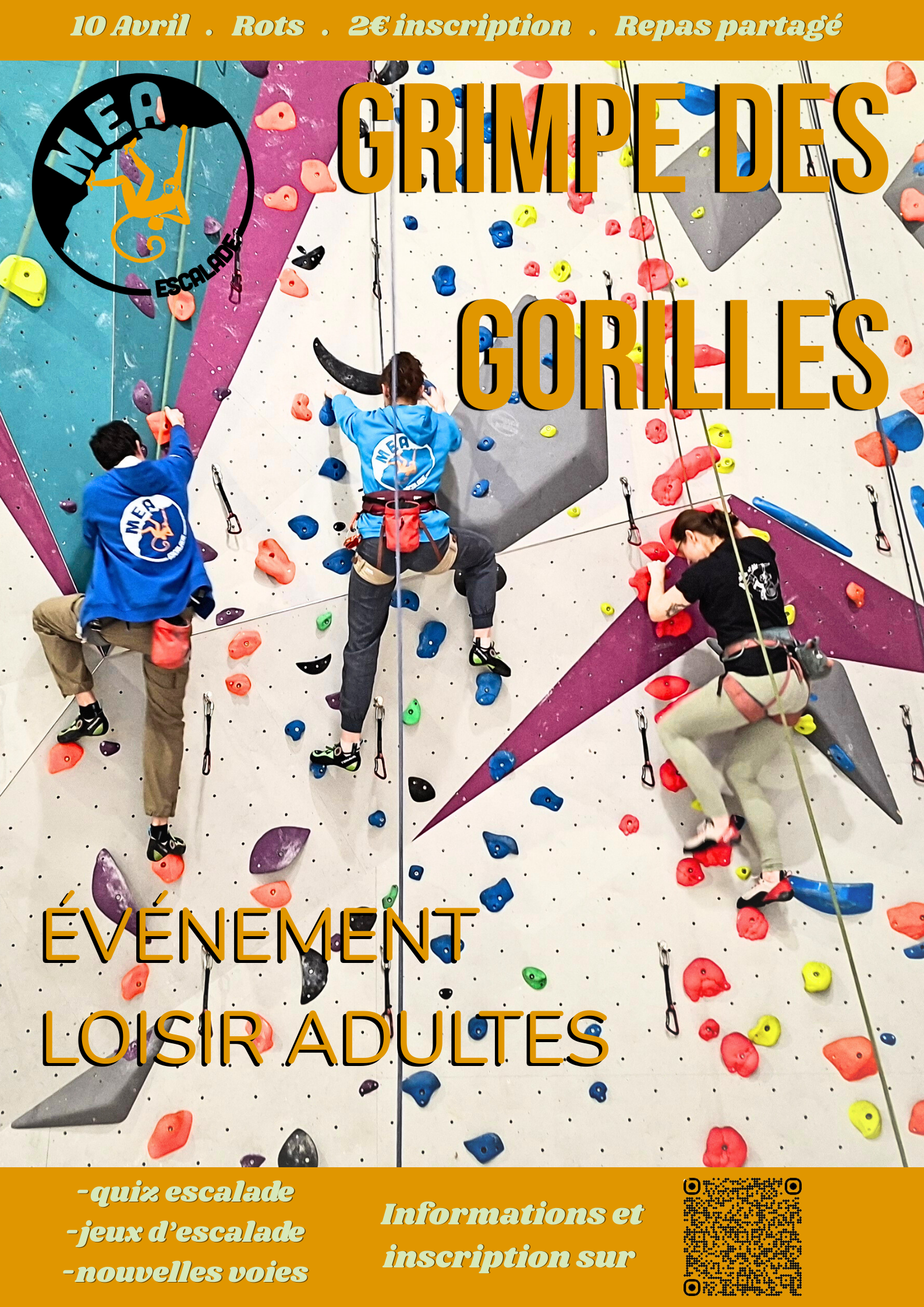 Pour plus d'informations, vous pouvez nous contacter à secretariat@escalade-mea.com